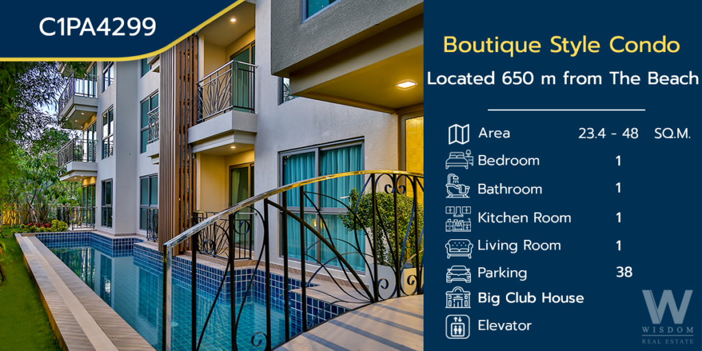 Condo project in Pattaya that stands out with a tropical style design that creates a warm atmosphere. Complete facilities A collection of tourist attractions in Pattaya City