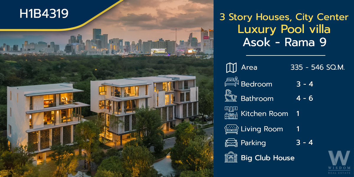 3-story house in the heart of Bangkok, Asoke – Rama 9, Luxury Pool Villa, near international schools and department stores, starting price 35-80 million baht.
